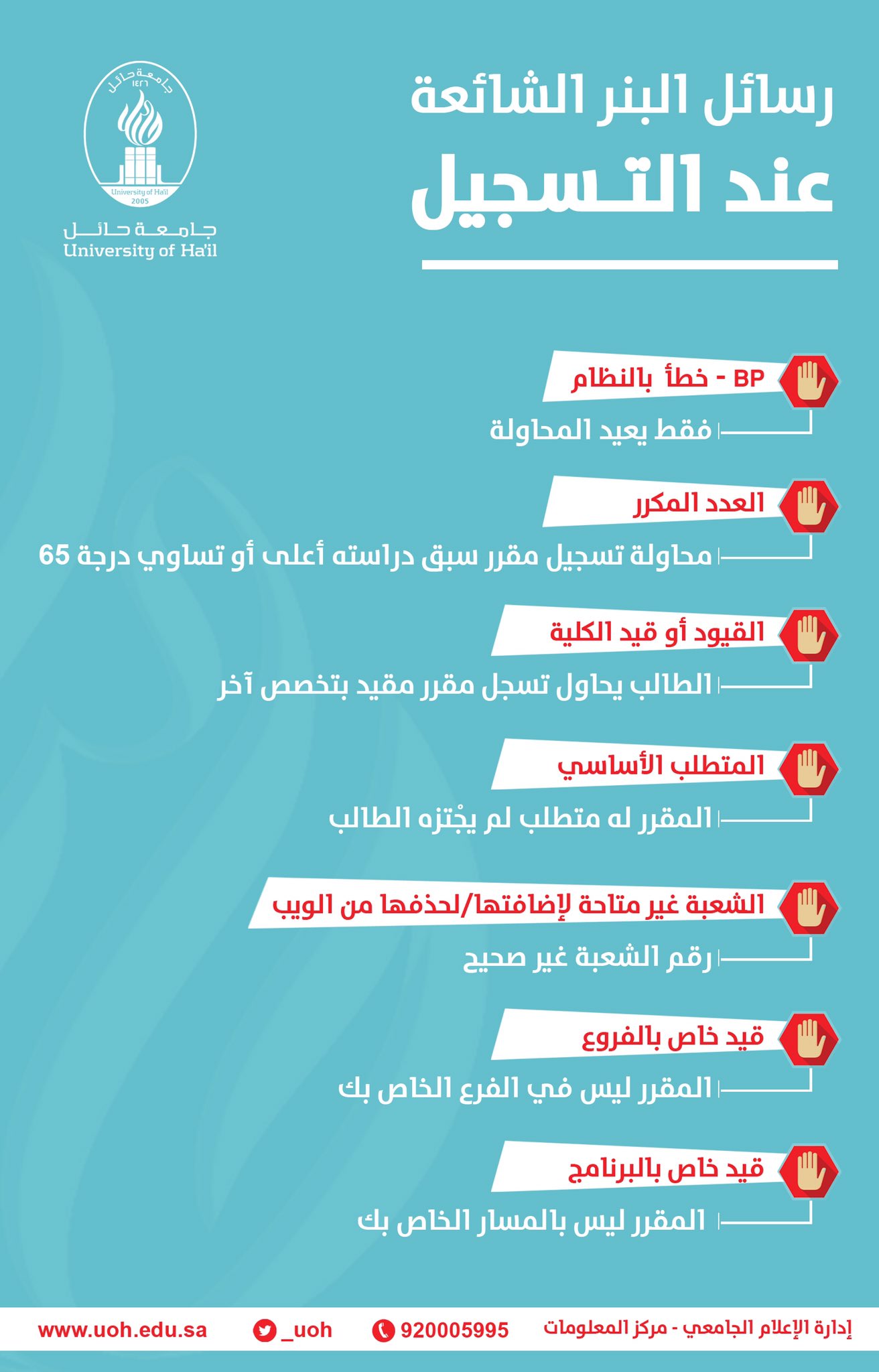 سعود البلوي Ar Twitter رسائل البنر الشائعة عند تسجيل المواد في جامعة حائل وماذا تعني القيود فيها